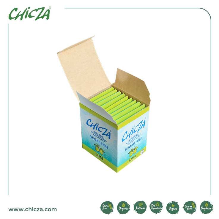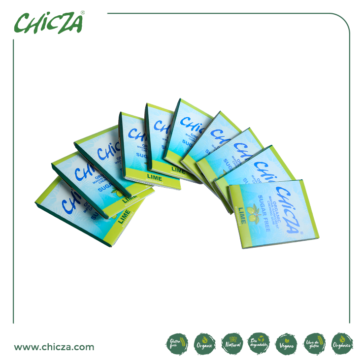Caracteristicas: Goma de mascar orgánica de la selva maya, libre de azúcar, 100% orgánica certificada, biodegradable, vegana, natural, libre de gluten, kosher, sin conservadores, su consumo es apto para celiacos.