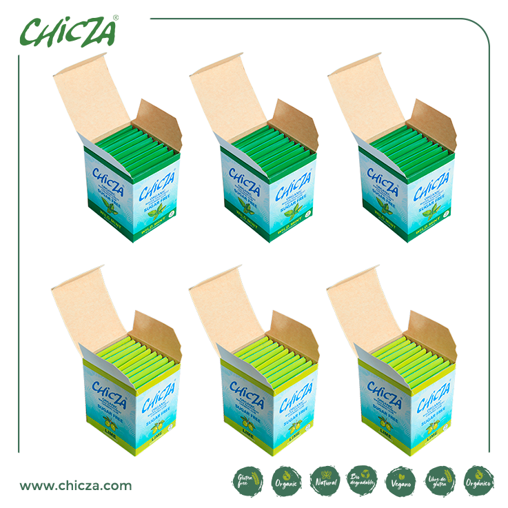 Ingredientes: Eritritol orgánico en polvo, goma base orgánica, glicerina orgánica y saborizante de menta y limón orgánica.