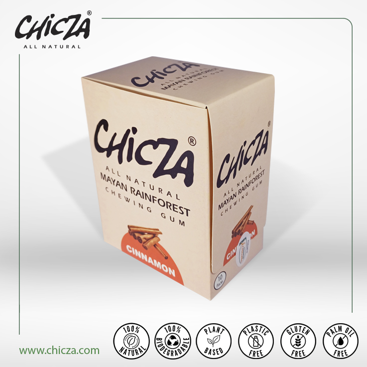 Características: goma de mascar 100% natural de la selva maya, biodegradable, vegana, natural, libre de gluten, libre de aceite de palma, libre de plástico, kosher sin conservadores, su consumo es apto para celíacos.