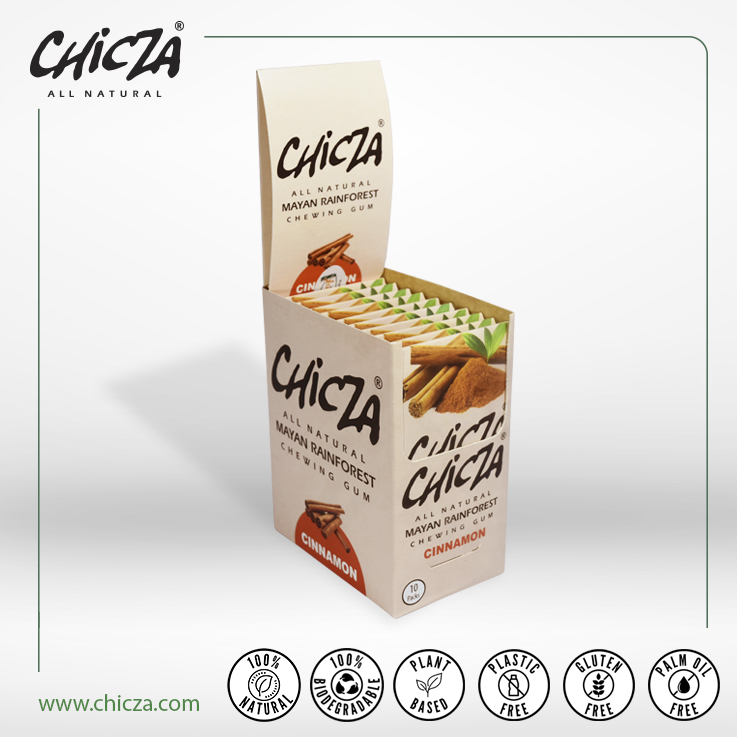 Ingredientes: Jugo de caña evaporada, goma base natural, jarabe de agave natural y saborizante natural de canela.